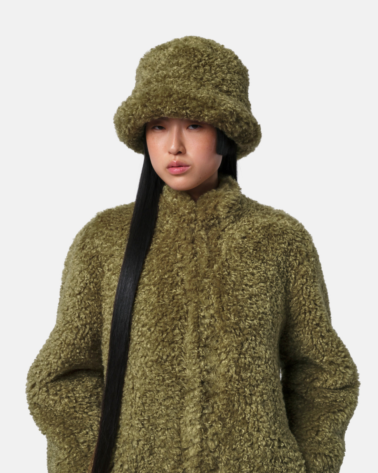 Recycled BOUCLETTE faux shearling with a tonal, faux suede lining.
