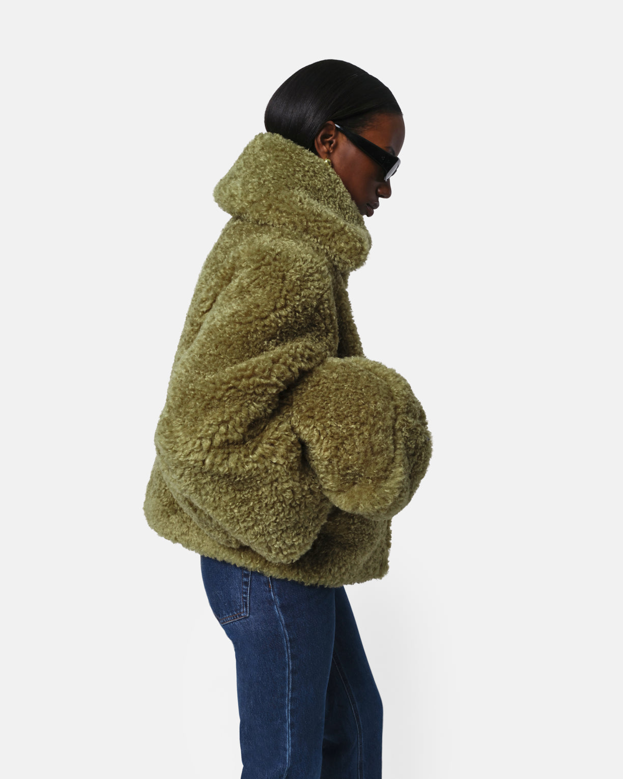 Ultra-soft BOUCLETTE faux shearling with bonded faux suede lining.