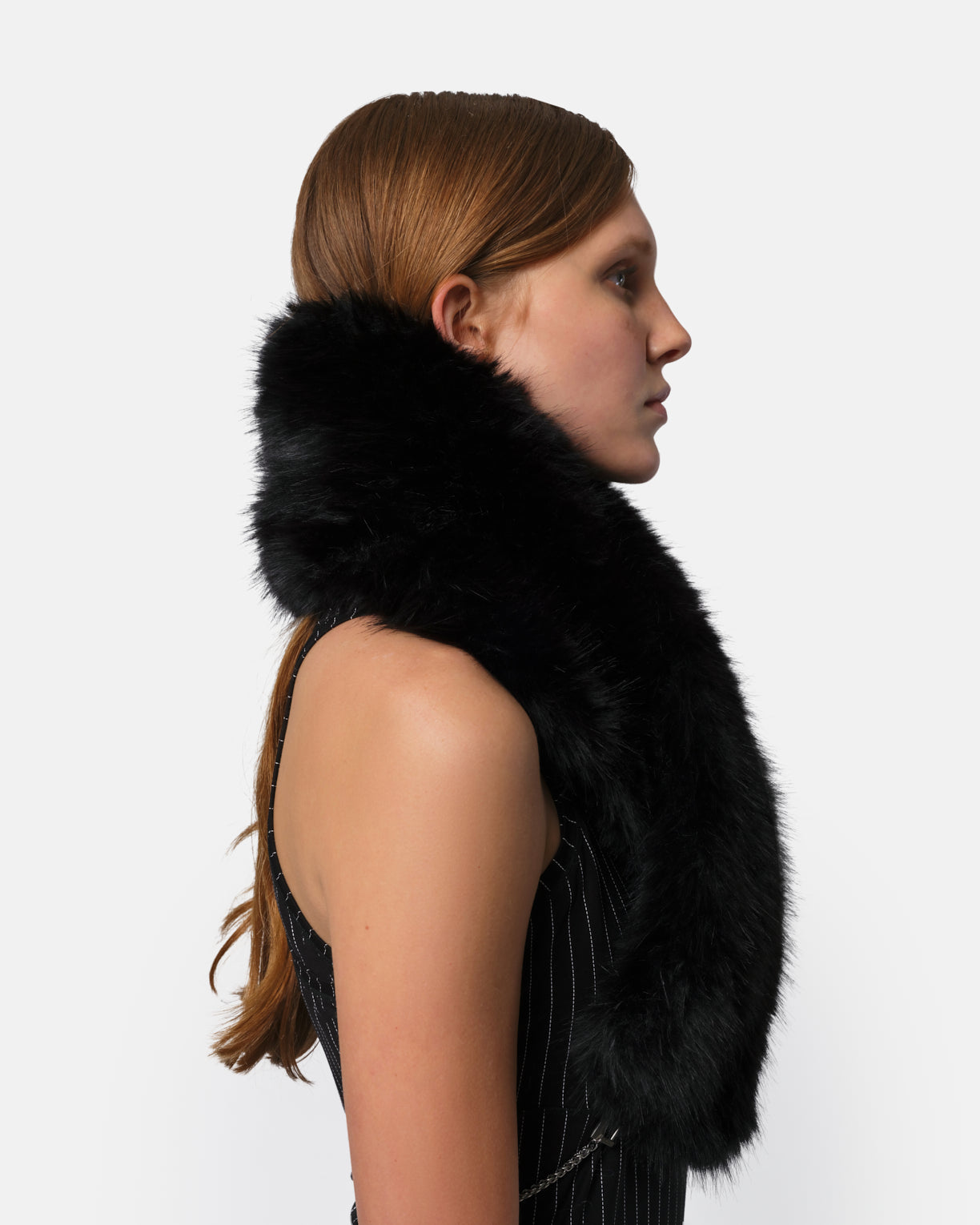 Recycled sable faux fur with chain.