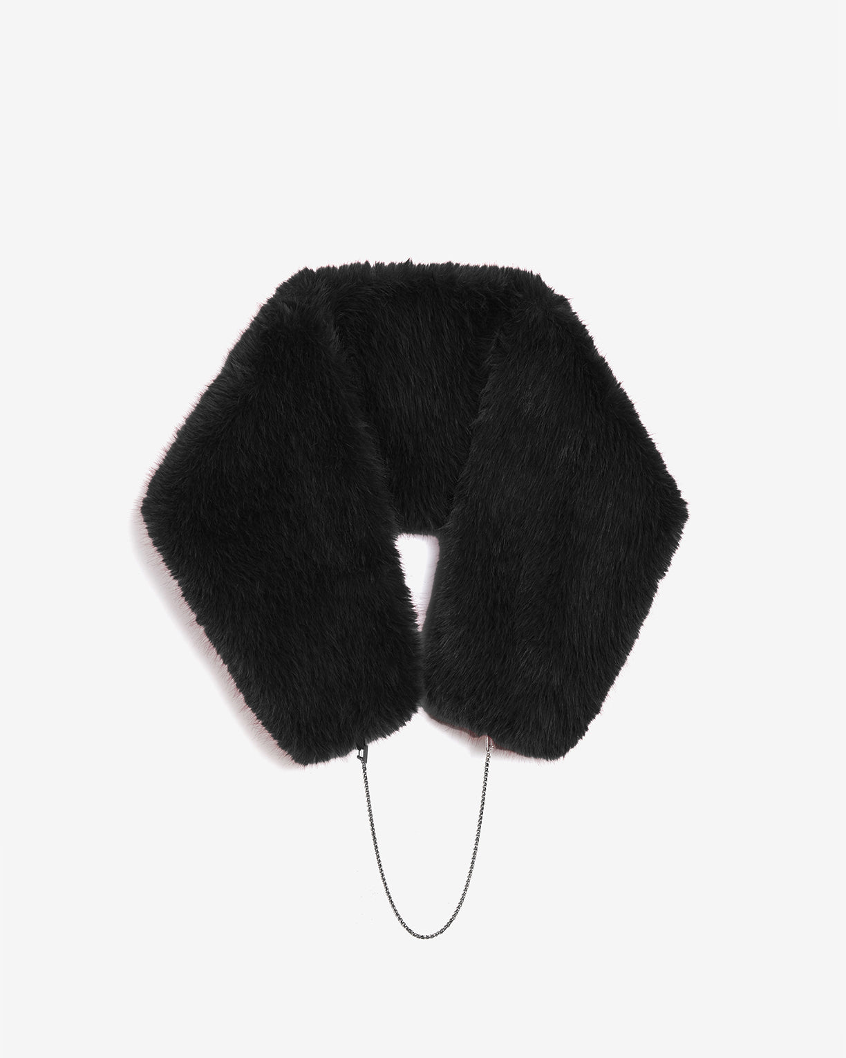 Sable faux fur shawl with detachable metal chain.