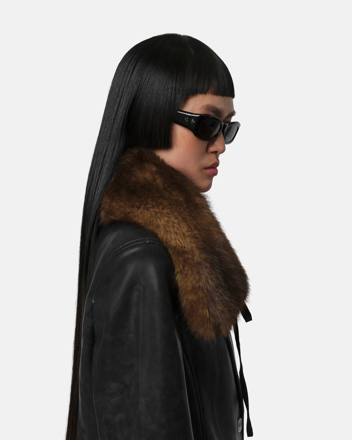 Oversized mink faux fur collar.