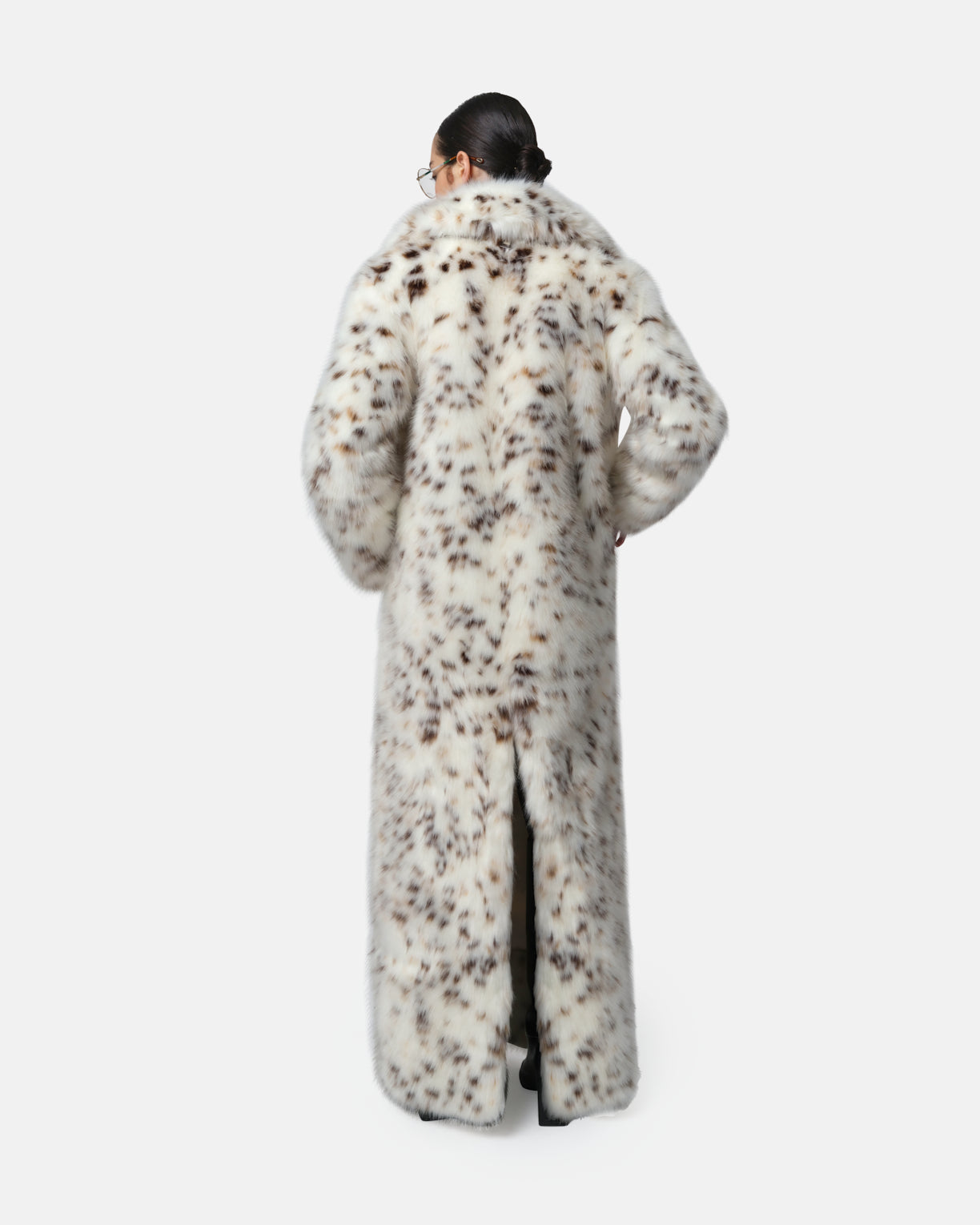 • Recycled faux snow leopard sable fur with SANS Leather paneling & 100% recycled lining.