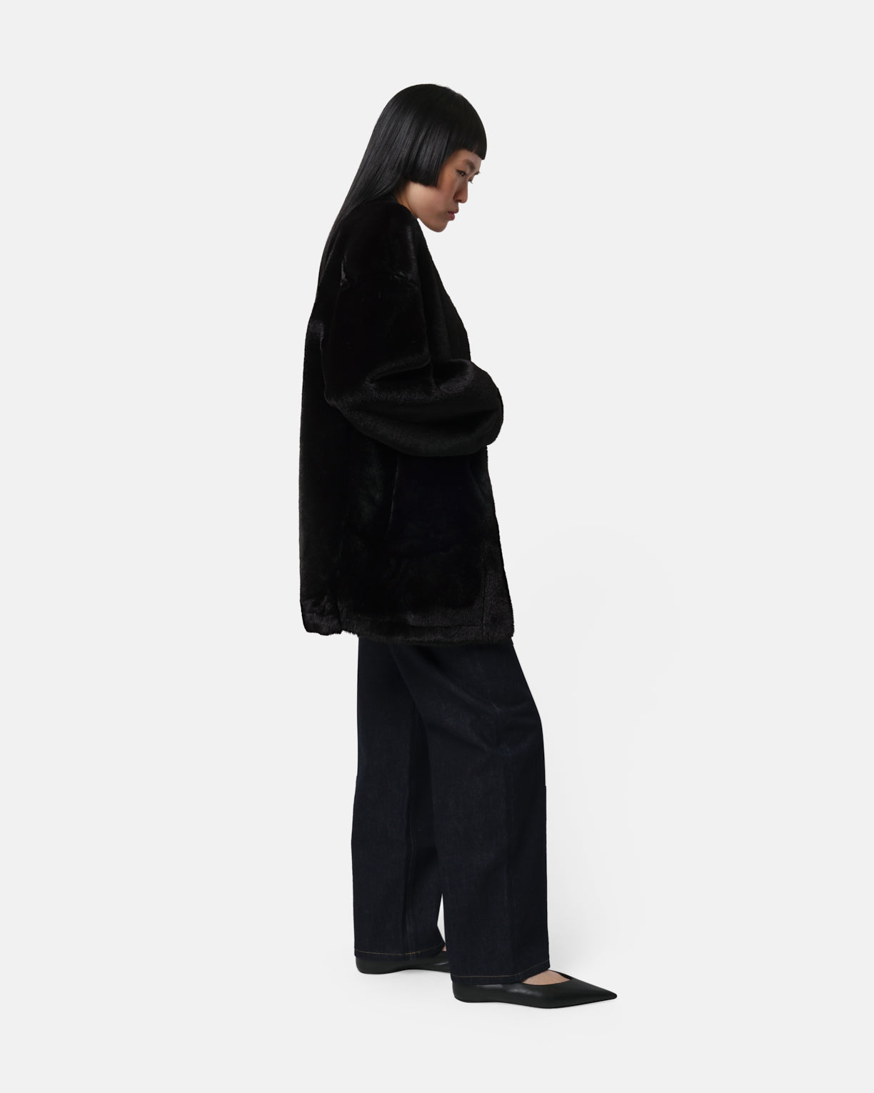 Recycled PLUCHE™ faux fur with a tonal, faux suede lining.