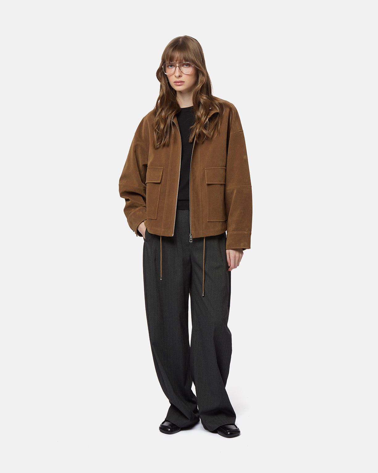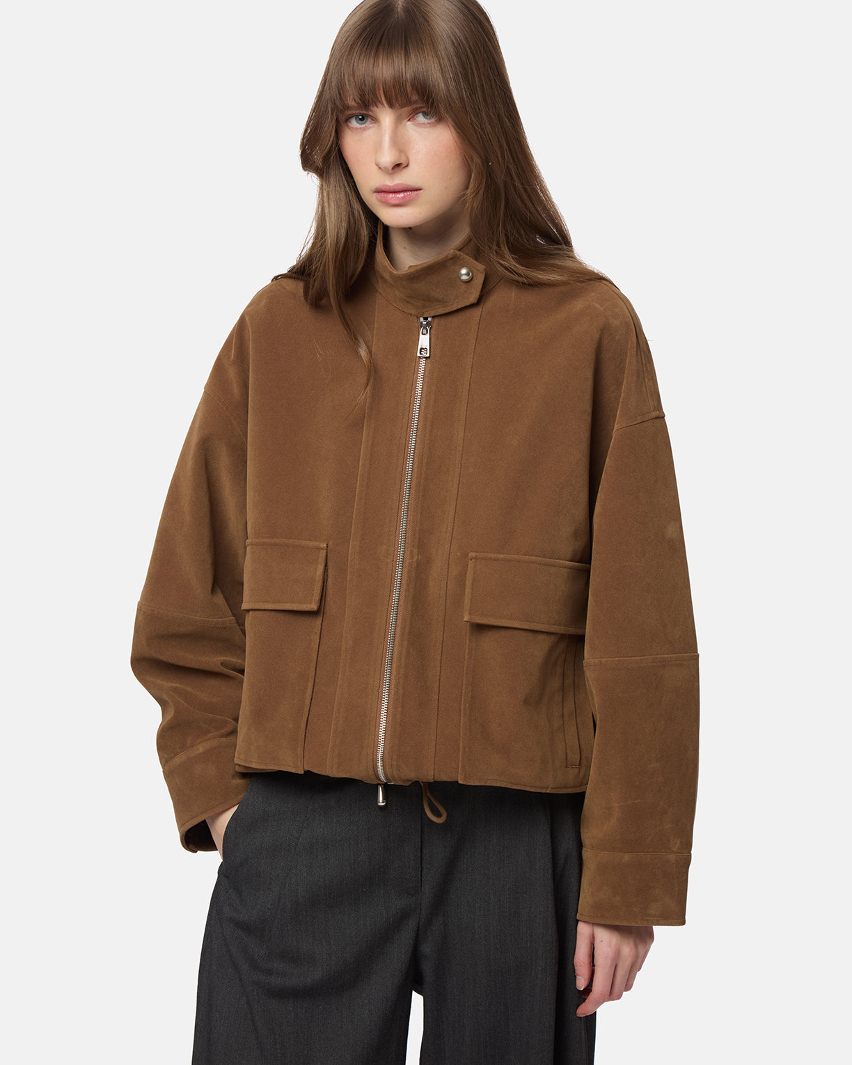 • Transitional-weight SANS Suede fabric combining structure with softness