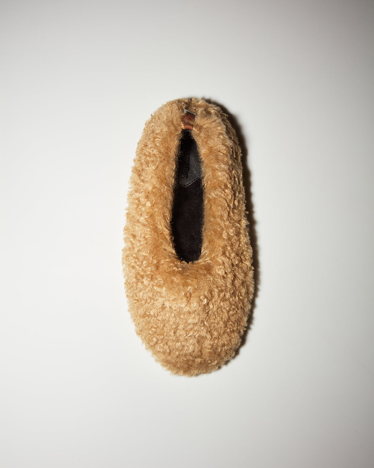 Ultra-soft BOUCLETTE faux shearling with a TPR outdoor sole and 100% cotton dust bag.