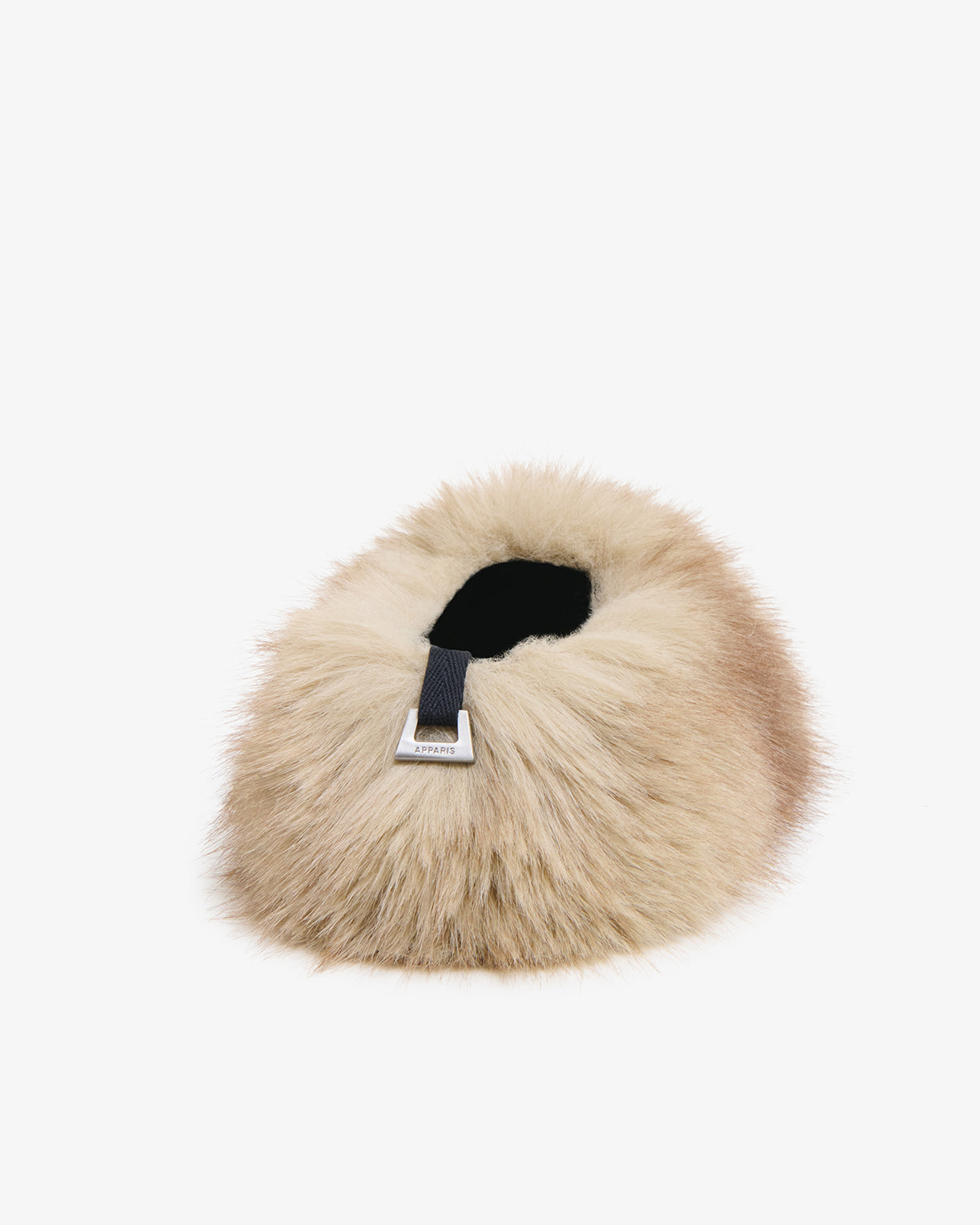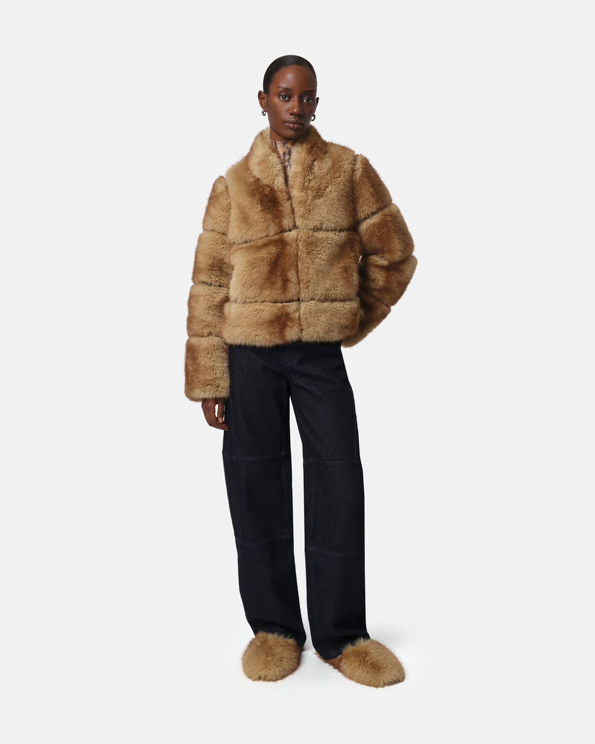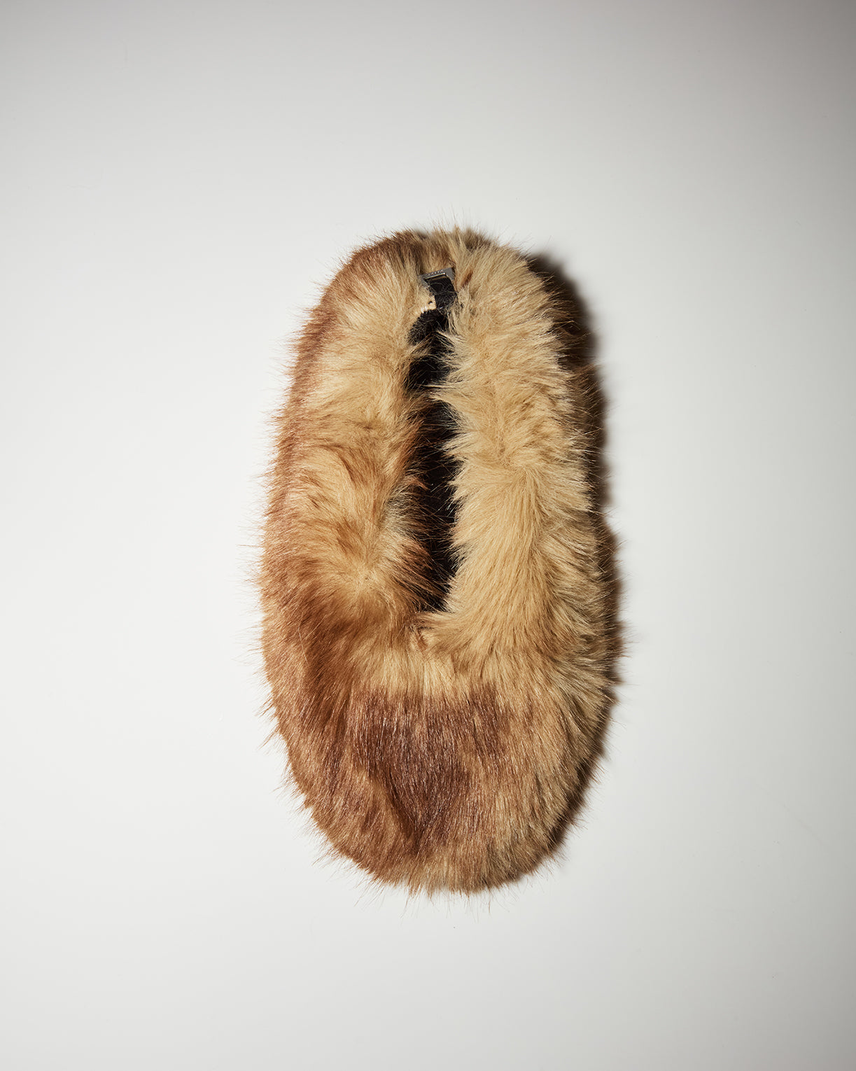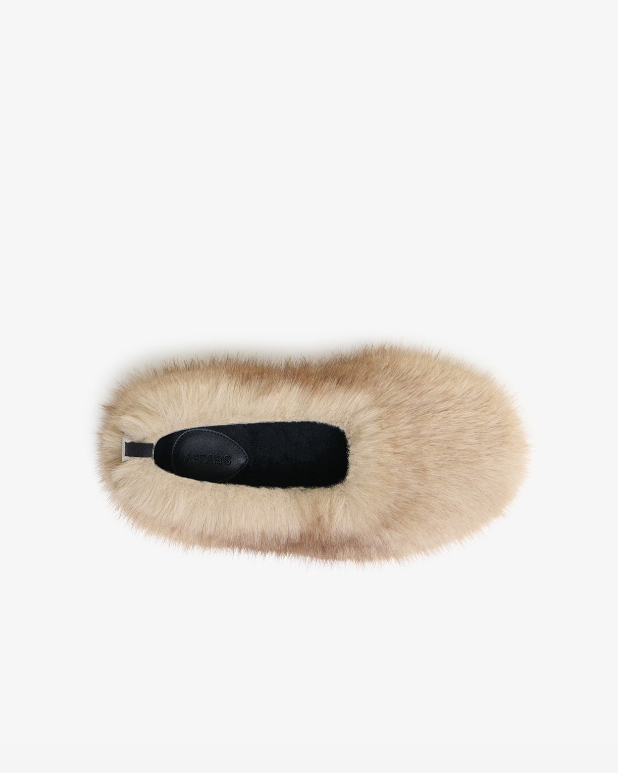Recycled faux mink fur with a TPR outdoor sole and 100% cotton dust bag.