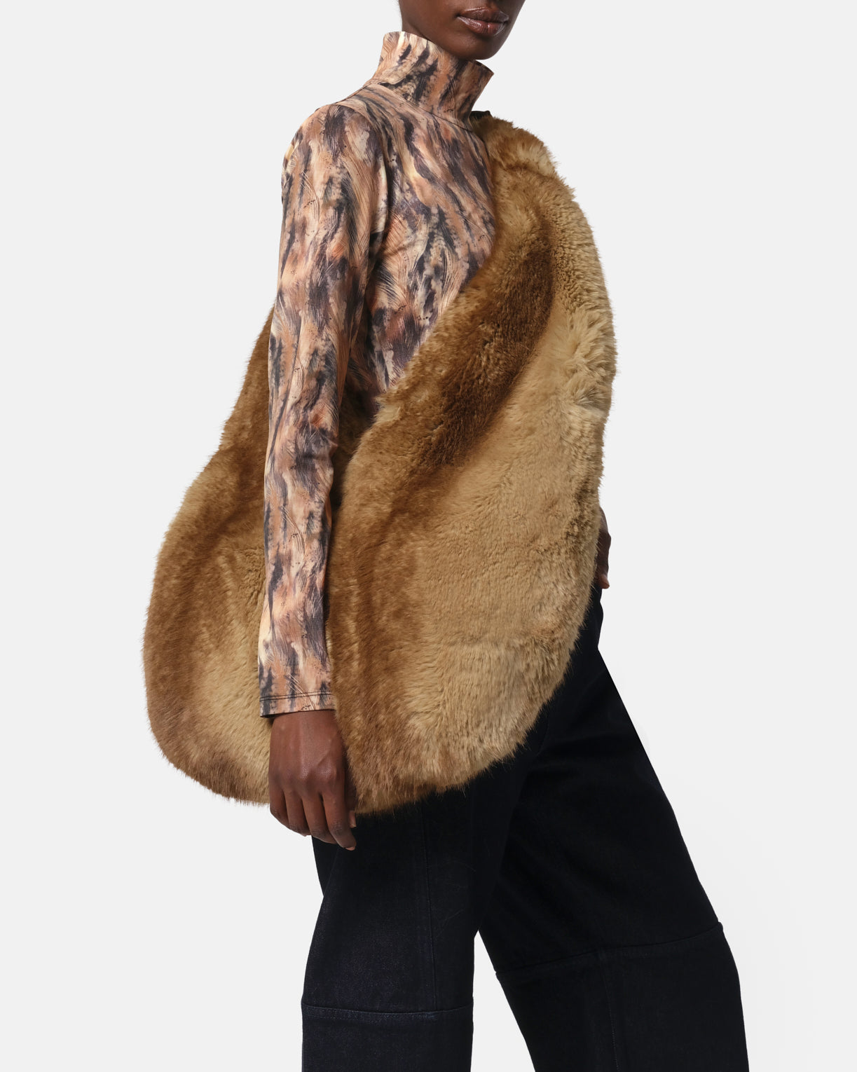 Recycled faux mink fur with a bonded, faux suede lining and detachable SANS Leather strap.