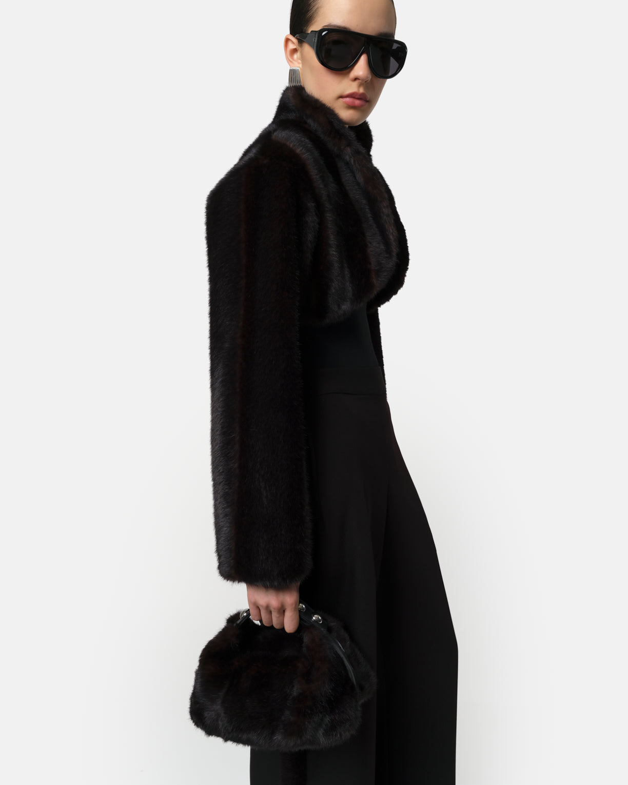 Shaved mink faux fur bolero.