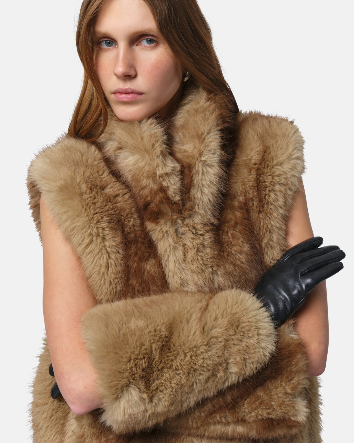 SANS Leather with recycled faux mink cuff and microfleece lining.
