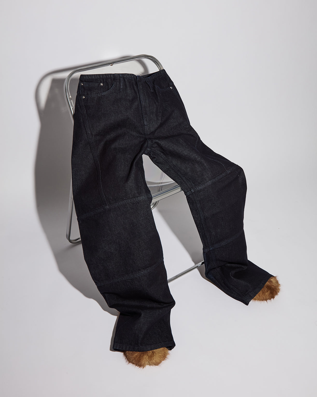 • Raw Denim, garment rinse washed.